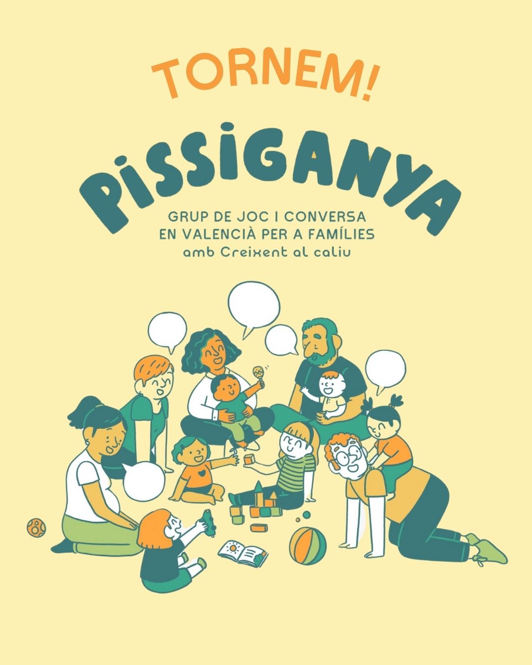 Pissiganya és un activitat grupal en què pares i mares, juntament amb els fills, es reunixen una volta al mes per a jugar i conversar